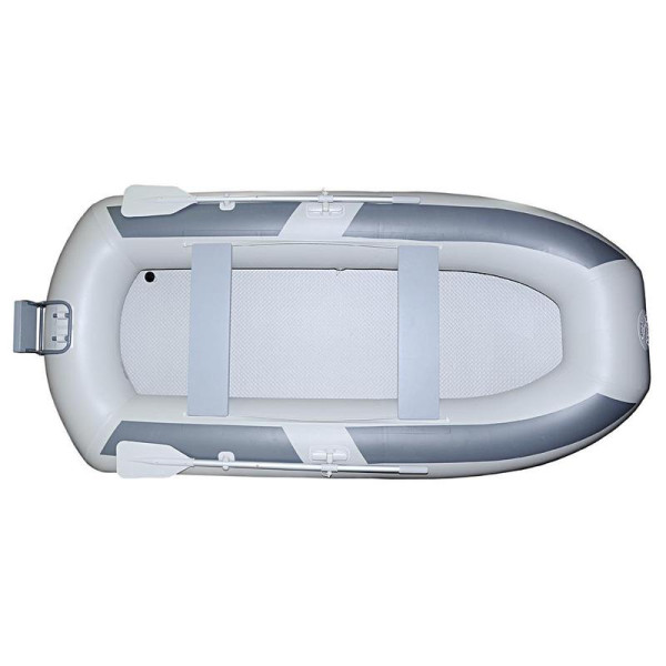 Надувная лодка Liman 320 AM SCFO изготовлена из ткани ПВХ плотностью 900 г/м². Замкнутый баллон увеличенного до 42 см диаметра разделен внутри мембранами на 2 воздушных отсека. В оснастку вошли: уключины, держатели для весел, весла, отбойник, передвижные банки. Наличие навесного транца привлекает к продаже надувной лодки Liman 320 AM SCFO внимание начинающих водномоторников. Модель рассчитана на движение под мотором до 5 л.с.