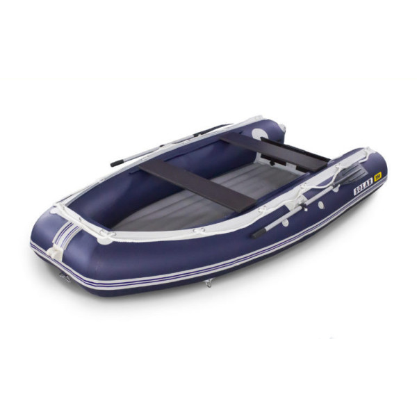В комплект поставки входит: руководство по эксплуатации (паспорт); 2 весла; 2 сидения; рем. набор (клей, ПВХ-ткань, инструкция по ремонту); насос ножной 5 л.; манометр; сумка для лодки.